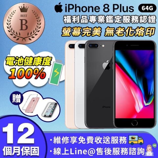 【Apple 蘋果】福利品 iPhone 8 Plus 64G 智慧型手機 電池健康度100%(贈鋼化膜+清水套)