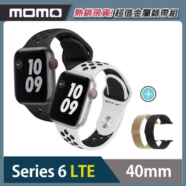 316L不鏽鋼 極致美型 金屬錶帶超值組【Apple 蘋果】Apple Watch Series6(S6) LTE 40mm 鋁金屬錶殼搭配Nike運動錶帶