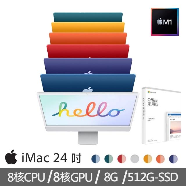 【+OFFICE 2019】iMac 24吋M1晶片/8核心CPU /8核心GPU/8G/512G SSD(4.5K Retina顯示器)