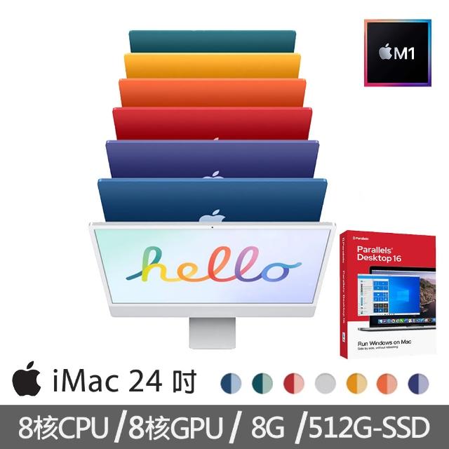 【送Parallels軟體 標準版】iMac 24吋M1晶片/8核心CPU /8核心GPU/8G/512G SSD(4.5K Retina顯示器)