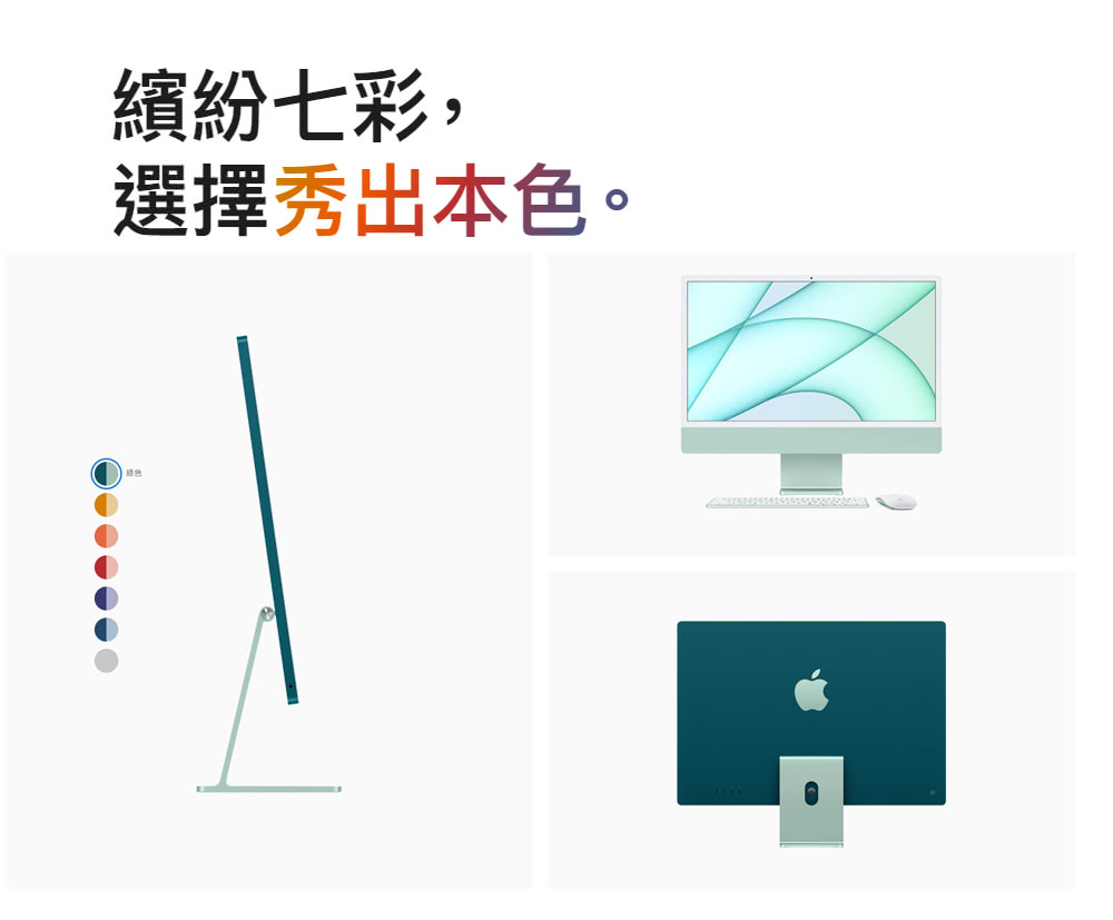 【+Microsoft 365個人版】Apple 特規機 iMac 24吋M1晶片/8核心CPU /8核心GPU/16G/256G SSD簡介說明