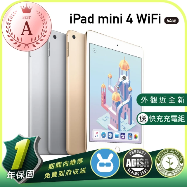 【Apple 蘋果】福利品 iPad mini4 WiFi版 7.9吋 64GB 保固一年 送好禮充電組 加贈隨身果汁G