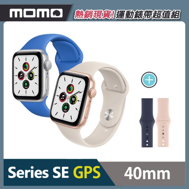 完美細緻 打造獨一無二舒適感 運動錶帶超值組★【Apple 蘋果】Apple Watch SE 40公釐 GPS版(鋁金屬錶殼搭配運動錶帶)