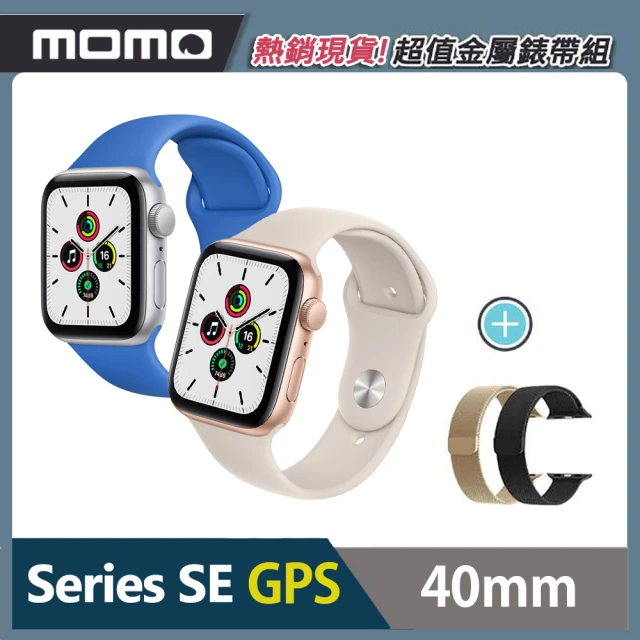 316L不鏽鋼 極致美型 金屬錶帶超值組【Apple 蘋果】Apple Watch SE 40公釐 GPS版(鋁金屬錶殼搭配運動錶帶)
