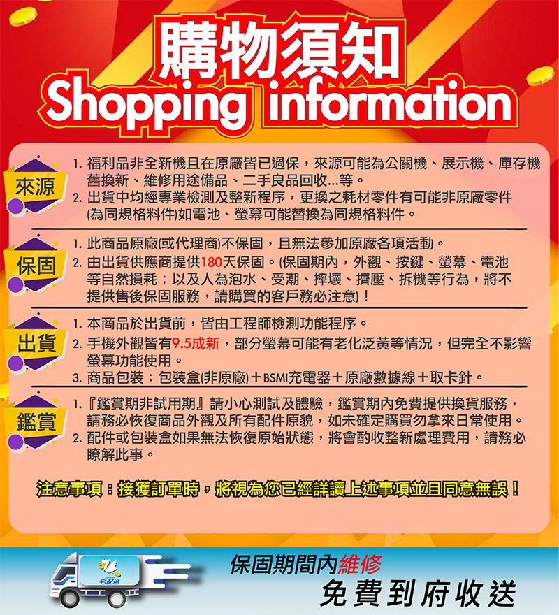 MOMO購物網 報價 8490 元,贈送鋼化玻璃貼+空壓殼,搭配BSMI充電器+原廠數據線,保固期內維修享有免費到府收送... 規格說明