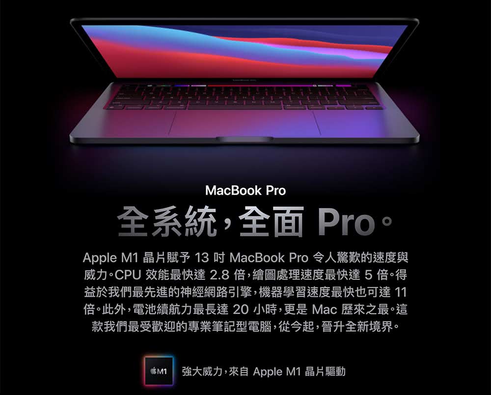 【Apple 蘋果】MacBook Pro 13.3吋 M1晶片/8核心CPU/8核心GPU/8G/512G SSD上線