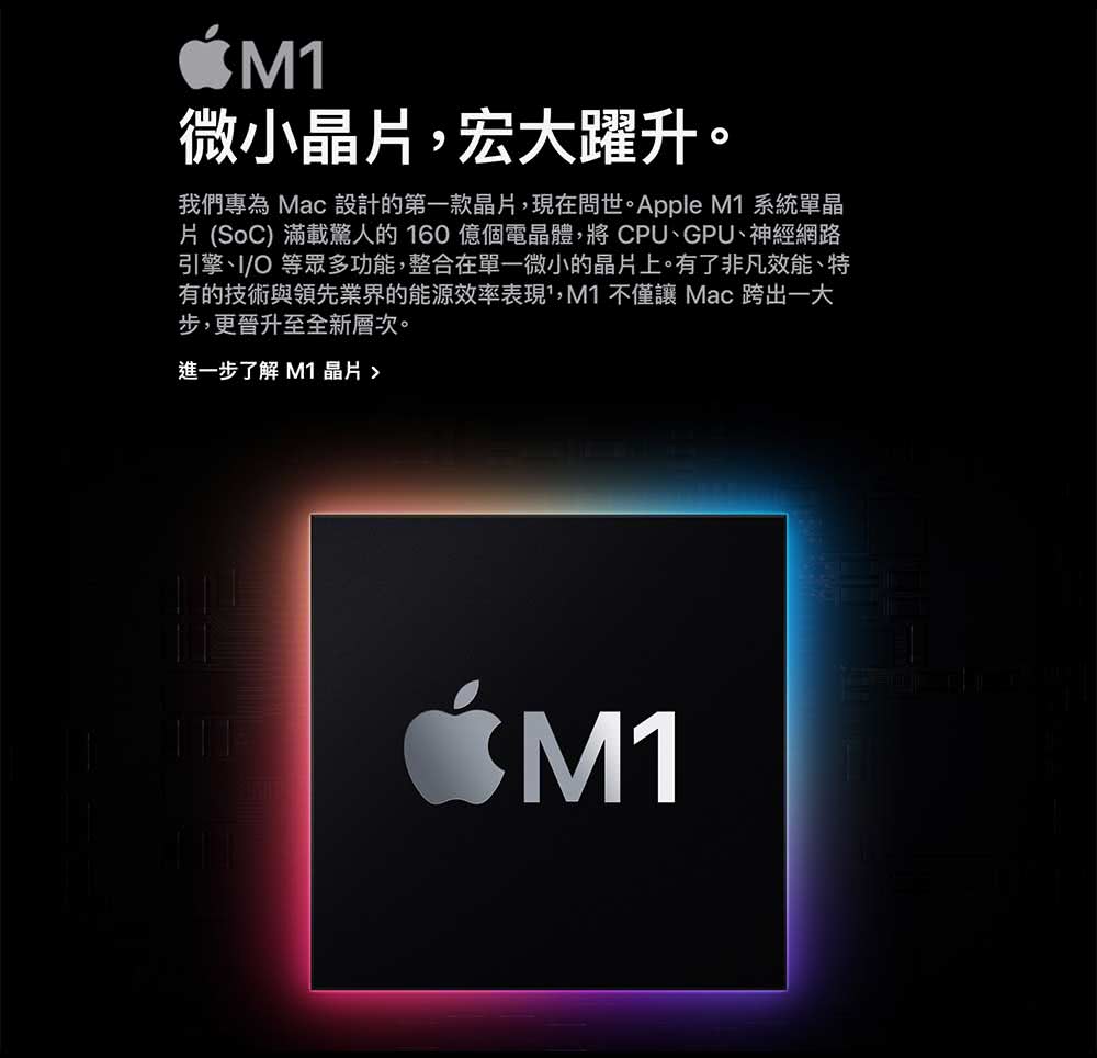 MOMO購物 網路價 39900 元,Apple M1 晶片,8GB 統一記憶體,256GB SSD 儲存裝置... 規格說明
